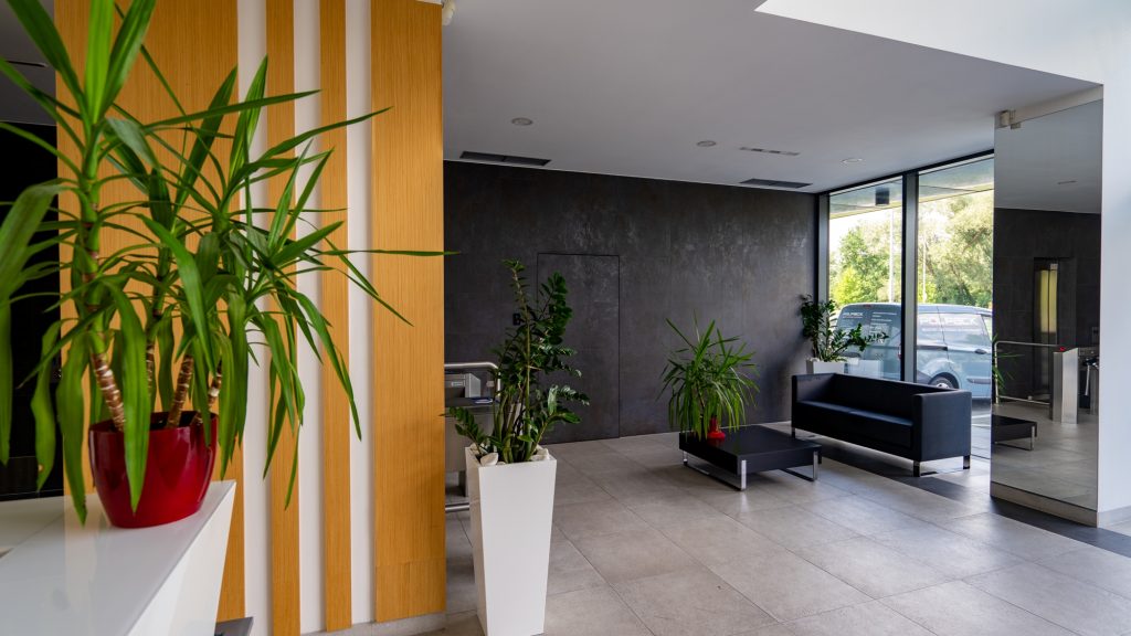 Wysokość pomieszczeń biurowych waha się od 2,7 do 3,0 metrów, co zapewnia komfort pracy i doskonałe doświetlenie pomieszczeń.