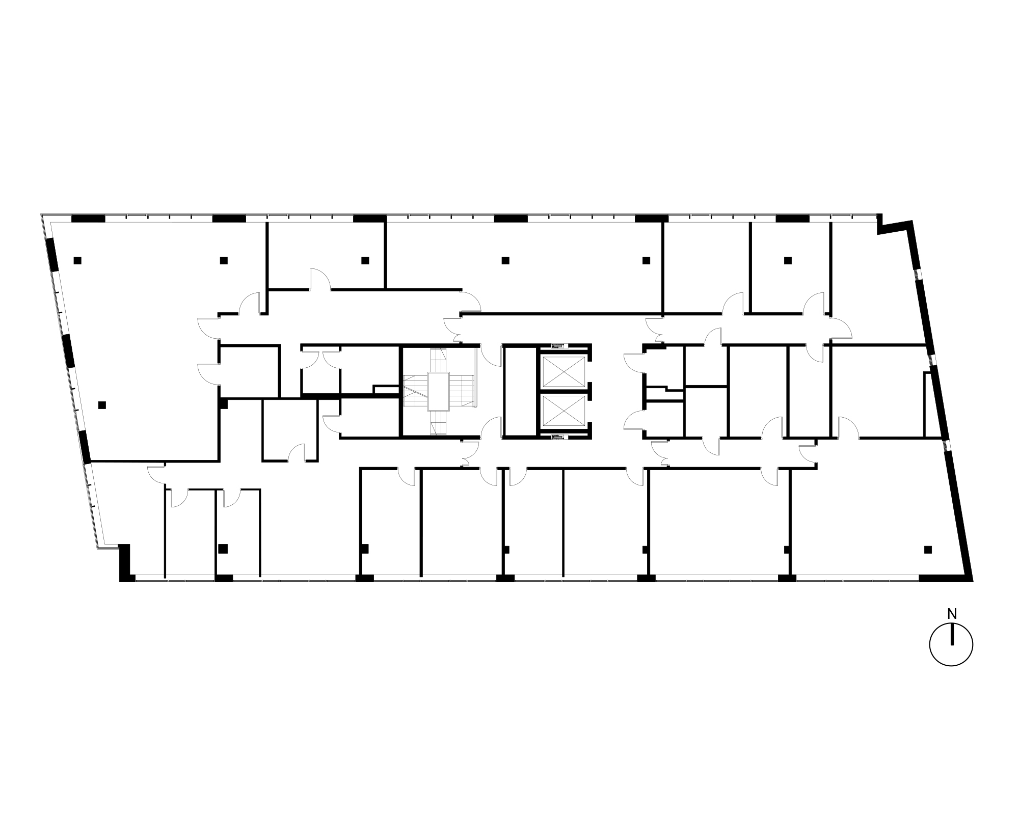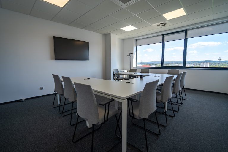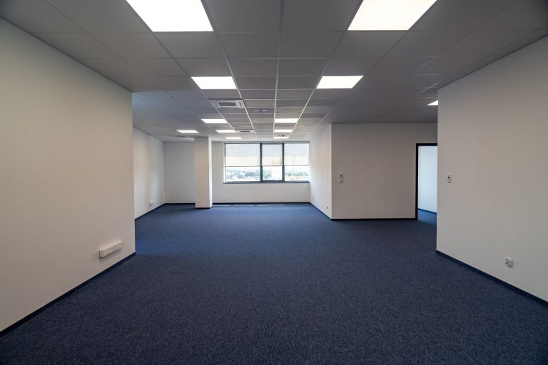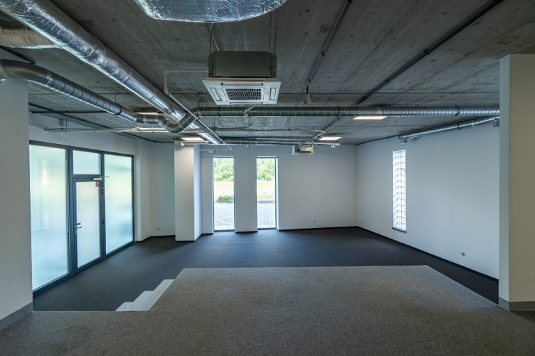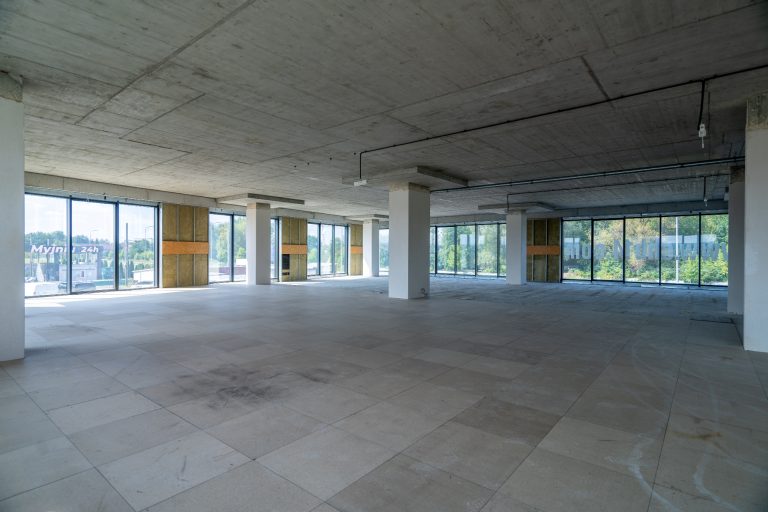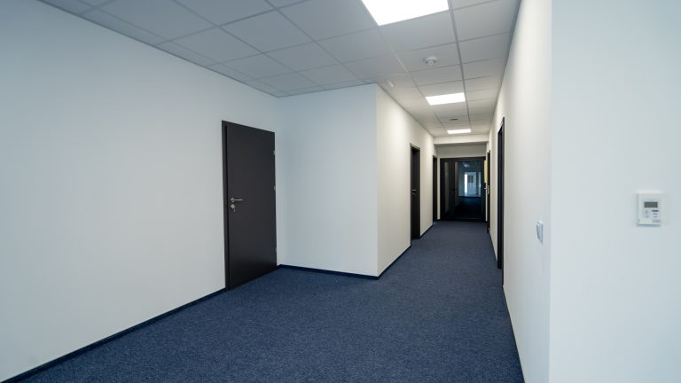 Wysokość pomieszczeń biurowych waha się od 2,7 do 3,0 metrów, co zapewnia komfort pracy i doskonałe doświetlenie pomieszczeń.