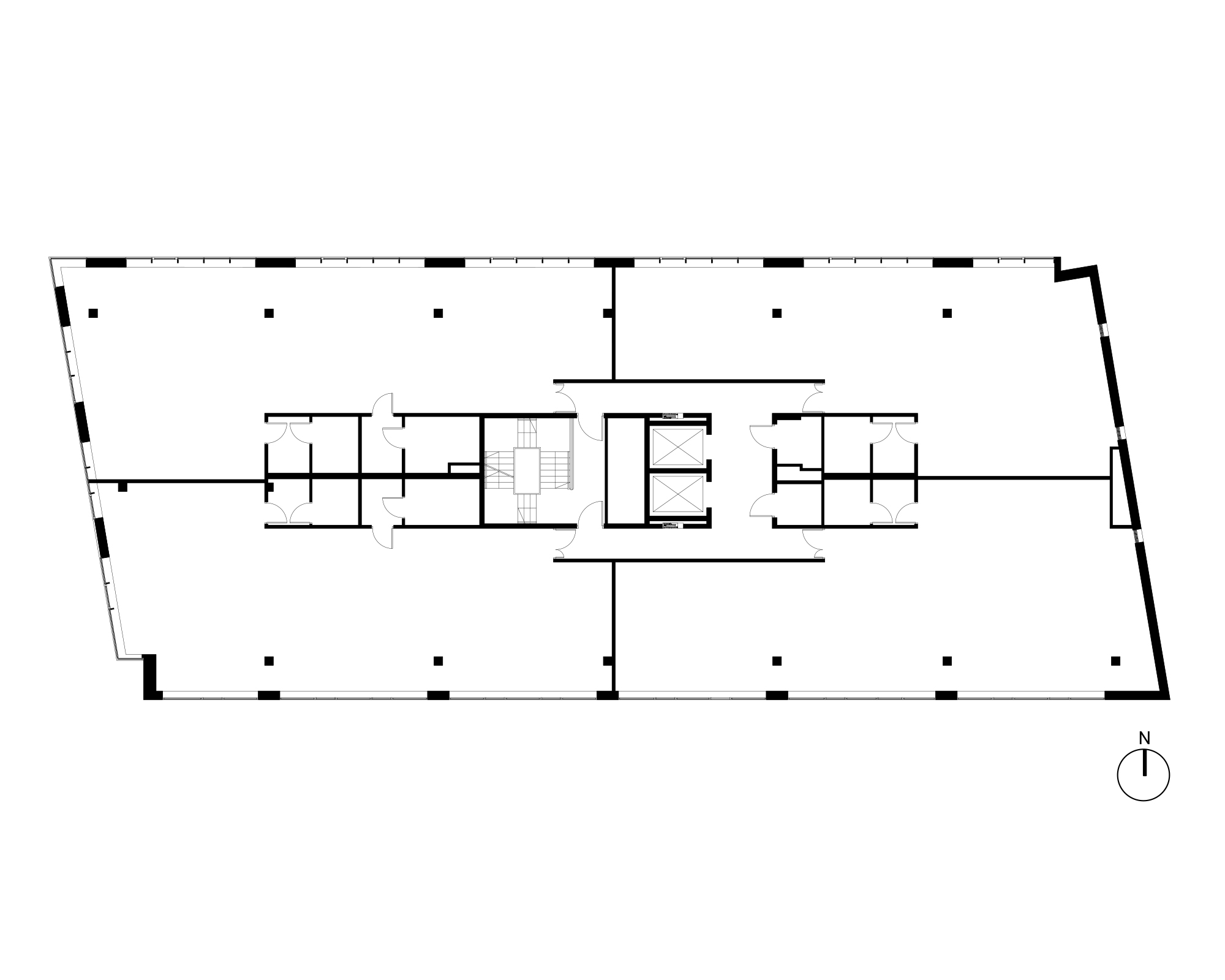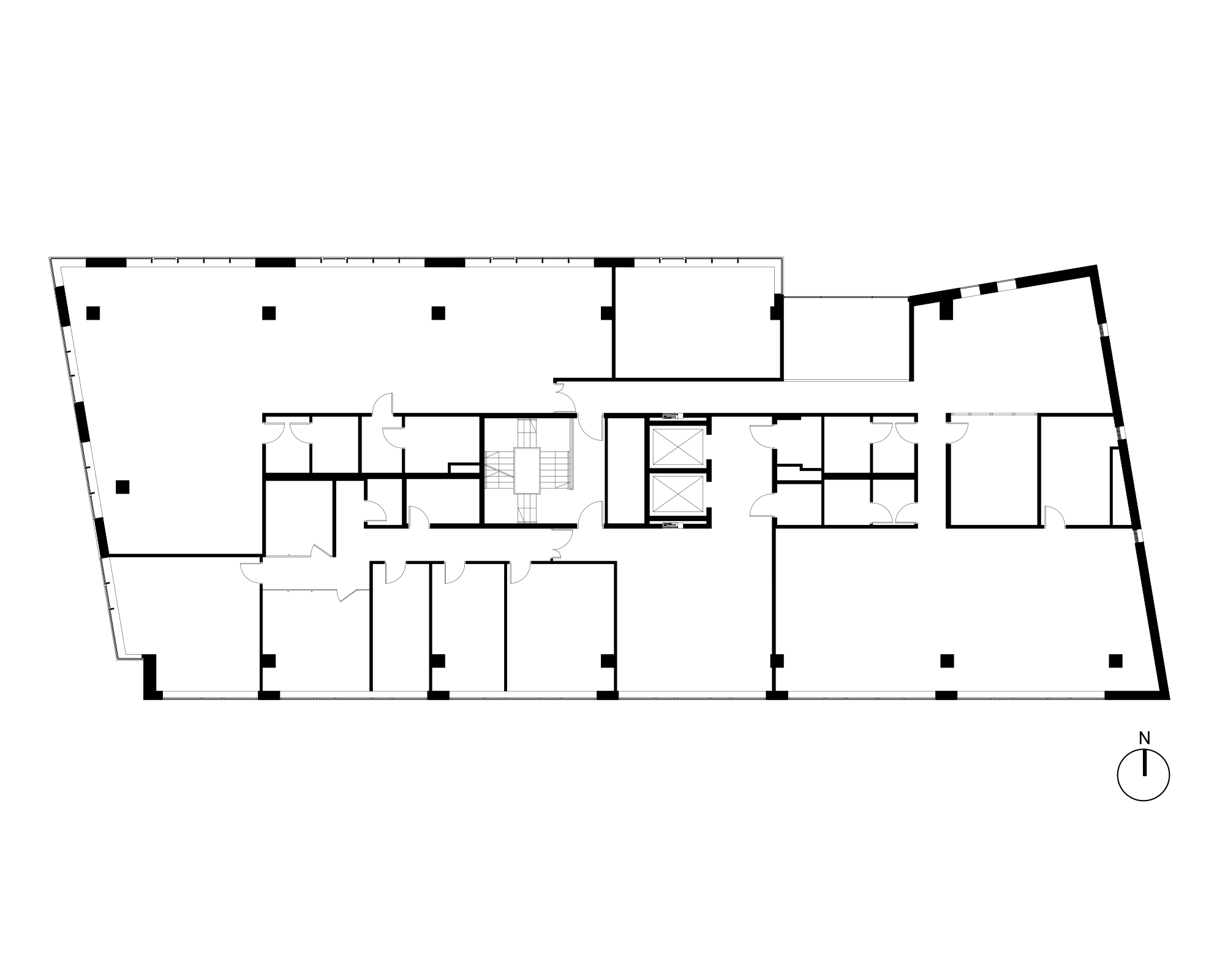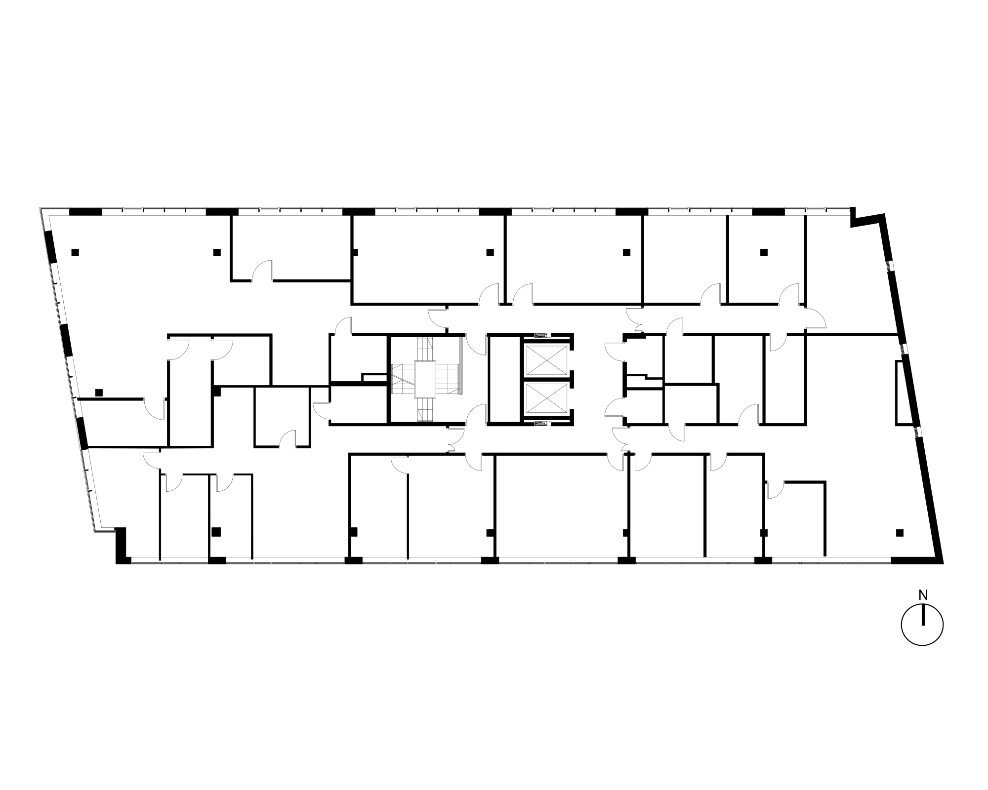 Wysokość pomieszczeń biurowych waha się od 2,7 do 3,0 metrów, co zapewnia komfort pracy i doskonałe doświetlenie pomieszczeń.